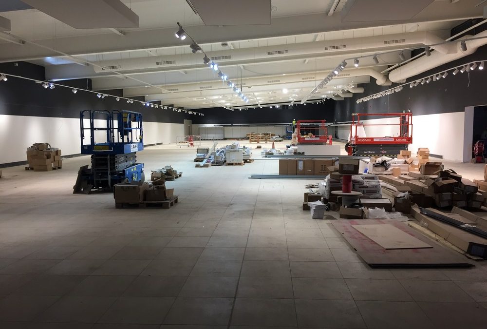 So our first Lidl Supermarket floor for a number of years is nearing completion.  Approximately 2000SqM of floor tiling and screed has been laid, using the vibrocompaction method of fixing, in just over a month – not bad going. The client, Lidl, are very happy with the quality and the builder Taemar, are happy with our professional service and attitude to the works.  The photographs show the works in progress and how quickly the floor has come into use.