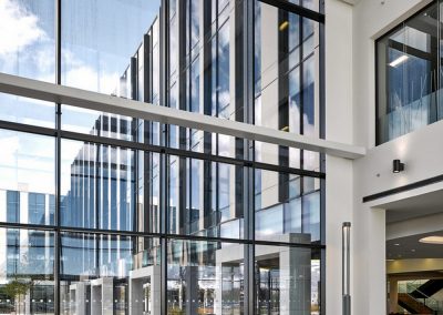 The tiling works on this office development, included over 6500M2 of large format Vileroy & Boch porcelain tiles to walls and floors, the majority of which was to the floors of huge atria linking the main blocks. The works were completed on time and to a standard which pleased the client immensely.