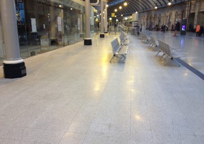 This project involved uplifting the existing terrazzo flooring to the main concourse, re-screeding and re-tiling with new terrazzo, including renewing several heavy duty duct and access covers. To maintain the use of the station throughout the works, most of it was undertaken out of hours.