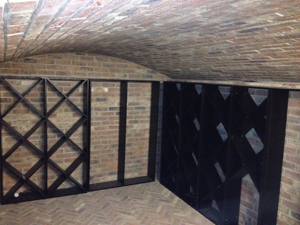 A regular client, who uses us both for her commercial projects and her own personal residence, asked us to assist in transforming her basic square box cellar into a vaulted space that looks the part to house her very impressive collection of wines. The resultant change is quite spectacular as these before, during and after shots show.